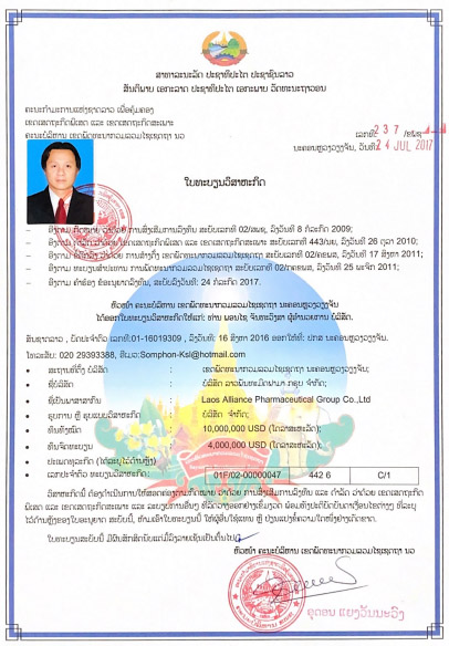 老挝联合制药集团有限公司,是集医药产品的研发、生产和销售为一体的现代化综合制药企业。公司位于中国国家级境外经济贸易合作区老挝万象赛色塔综合开发区,占地28500平方米。公司目前投资金额为1000万美金,安装配置了国际先进水平的制剂生产设施、设备和分析仪器,拥有一支国际化的研发、生产和管理团队。